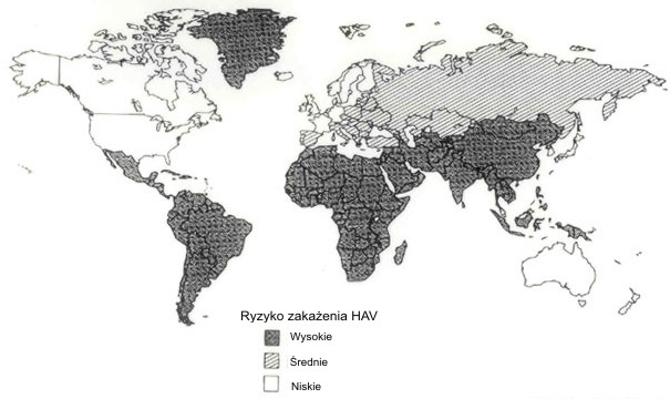 Wirusowe zapalenie wątroby typu A, zwane popularnie "żółtaczką pokarmową", jest to szeroko rozpowszechniona na świecie choroba zakaźna wywoływana przez wirus HAV (Hepatitis A Virus), uszkadzający komórki wątrobowe. Rocznie notuje się od 1,2 do 1,4 miliona przypadków, ale przypuszcza się, że występuje 3-10 razy częściej. Szacuje się, że WZW A stanowi ponad 50% wszystkich wirusowych zapaleń wątroby. W krajach, w których występują złe warunki sanitarne, rozwija się w zbiorowiskach: żłobkach, przedszkolach, szkołach, domach dziecka, środowisku domowym. Bardzo wysoką zapadalność notuje się w krajach Afryki, Azji Południowo-Wschodniej, Ameryki Południowej. Największa na świecie epidemia wystąpiła w 1988 roku w Szanghaju. Zachorowało wówczas ponad 300 000 osób, Łatwość z jaką zakażenia HAV szerzą się w środowisku wynika z oporności wirusa na wiele czynników zewnętrznych np.: na kwas octowy, fosforowy, chloroform, eter, związki fenolu i alkohole. HAV jest natomiast wrażliwy na działanie formaliny oraz kwasu solnego. Ginie natomiast w autoklawie w temperaturze 121 st.C po 30 minutach oraz pod wpływem gotowania przez pięć minut i promieniowania UV. W temperaturze od -20 st.C do +4 st.C HAV zachowuje stabilność przez wiele lat. Wysuszony w temperaturze pokojowej lub znajdujący się w wodzie, owocach morza i ściekach jest zdolny wywoływać zakażenie przez wiele tygodni. W procesie pasteryzacji mleka w temperaturze 60-63 st.C ulega unieszkodliwieniu dopiero po dziesięciu godzinach. Człowiek jest jedynym rezerwuarem HAV i źródłem zakażenia. Zarażają się nim głównie małe dzieci, które chorują subklinicznie. Opisywane były różne warianty genotypowe. Od ludzi chorych na WZW A wyizolowano genotypy I, II, III i VII. Pozostałe genotypy są patogenne dla małp i nie mają wpływu na sytuację epidemiologiczną WZW A.